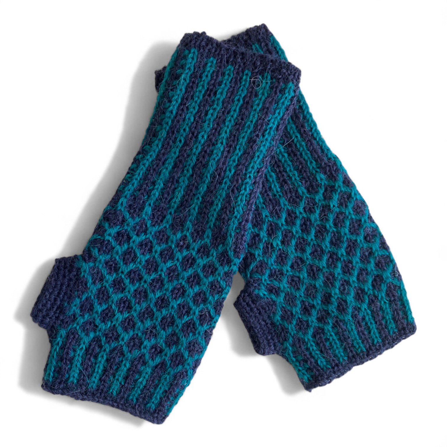 Nogal Fingerless Gloves/Wrist Warmers - Aqua/Navy