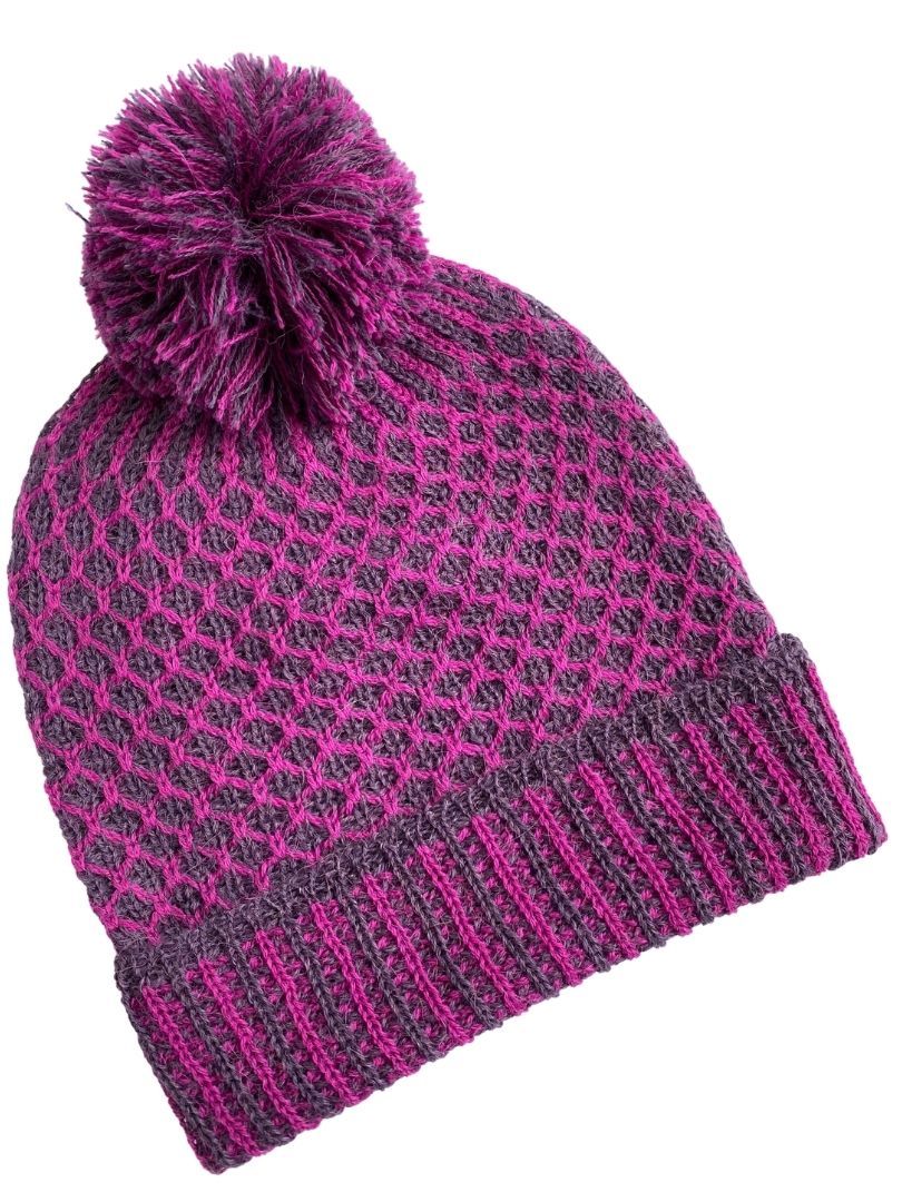 Reversible Hand Knit Alpaca Beanie - Magenta/Charcoal $89.95